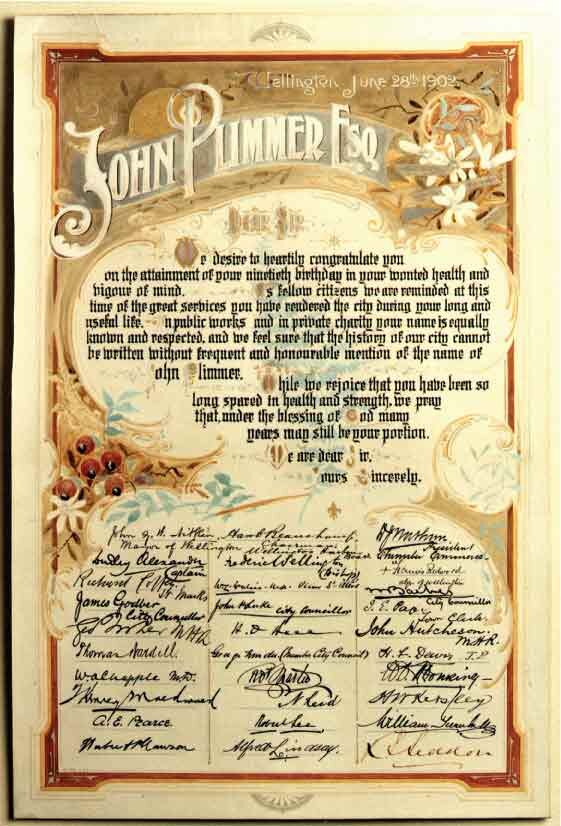 In his later years, in recognition of his contribution to the city of Wellington, Plimmer was unofficially bestowed the title "Father of Wellington".